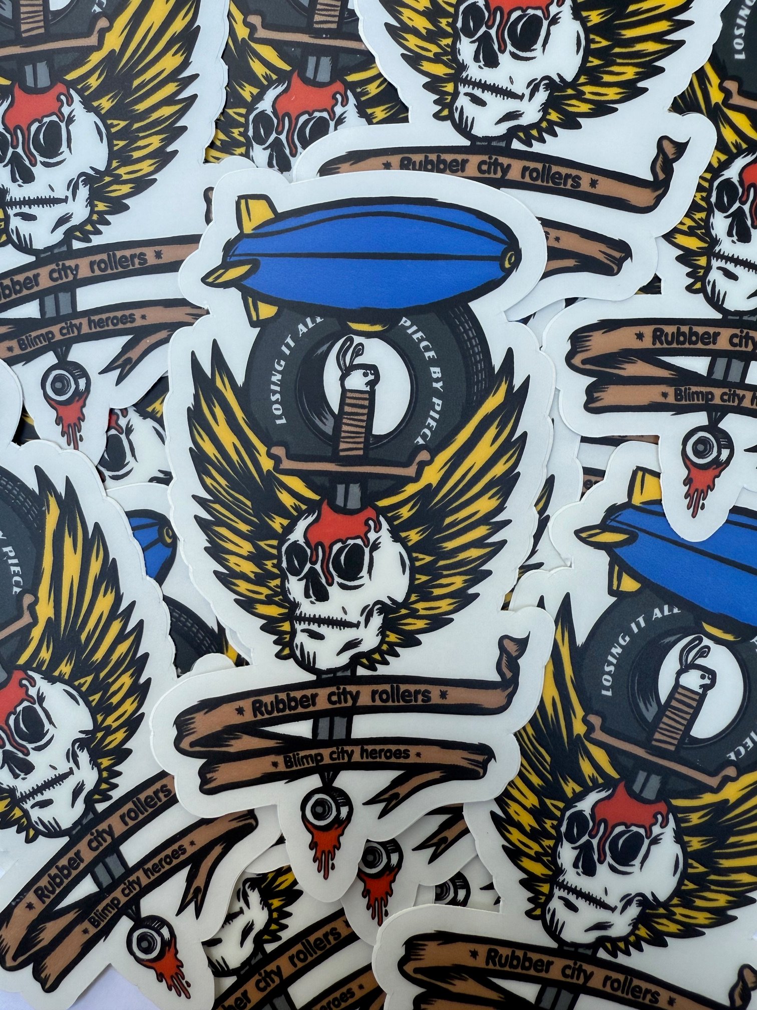 Rubber City Rollers was the name of a Skateshop that I had for a few years back in 2003 to 2006. I drew the blimp for the first graphic and it appeared on t shirts, stickers and skateboards. Many people throughout the years have asked for me to reprint some stuff so they can relive their glory days. I don't really like reprinting old stuff because I figure once something is dead and gone, it's dead and gone. Especially in skateboarding. I feel like it's our jobs as skateboarders to be constantly pushing the envelope and try and come up with new and exciting stuff.